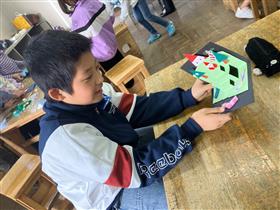 最後に、折り紙と先生が用意されたシールなどを使い、きれいに飾り付けを行いました。