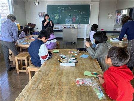 「なかよし広場」文化サークルでは、毎月土曜日(月に1回)、市内の小学生を対象に絵手紙・押し花・折り紙・葦(あし)ペンなどさまざまな体験活動を行っています。