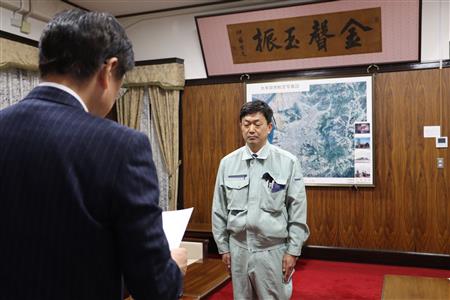 写真)派遣辞令を受け取る職員(R6.3.29)