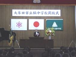 桜のつぼみが少しずつ開き始めた3月24日(月)、在校生や御来賓、地域の方や教職員など、たくさんの方々に見守られながら、橘中学校、田隈中学校、歴木中学校がそれぞれの長い歴史に幕を閉じました。