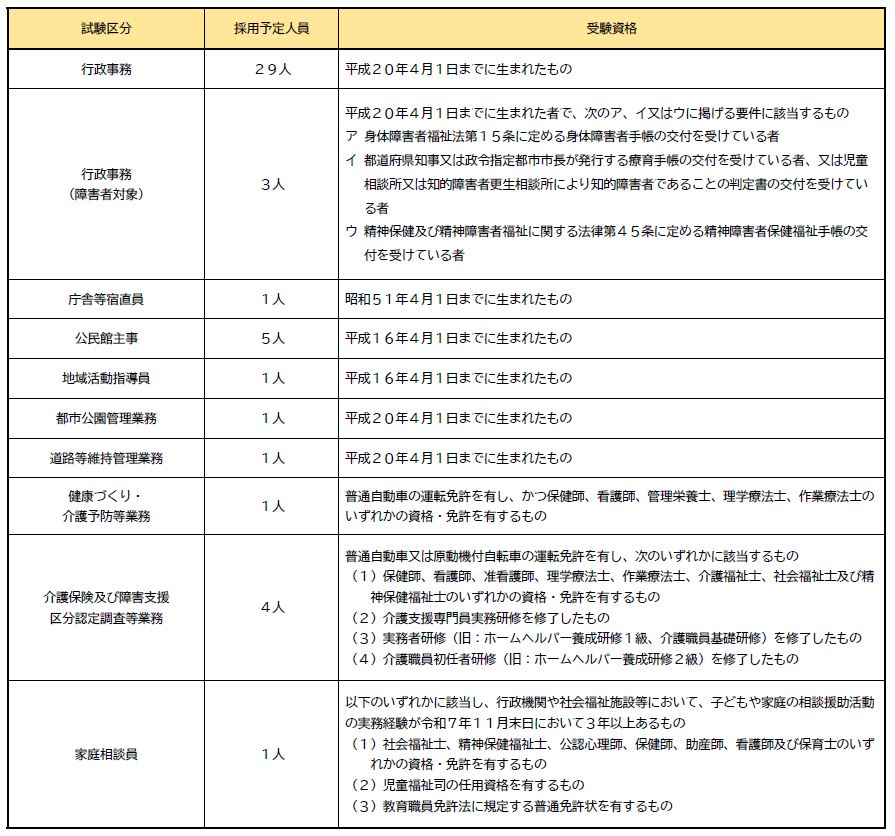 ※受験に資格や免許が必要な試験区分(実務経験が必要な区分を除く)は、採用日までに資格・免許を取得見込みの方も受験することができます。